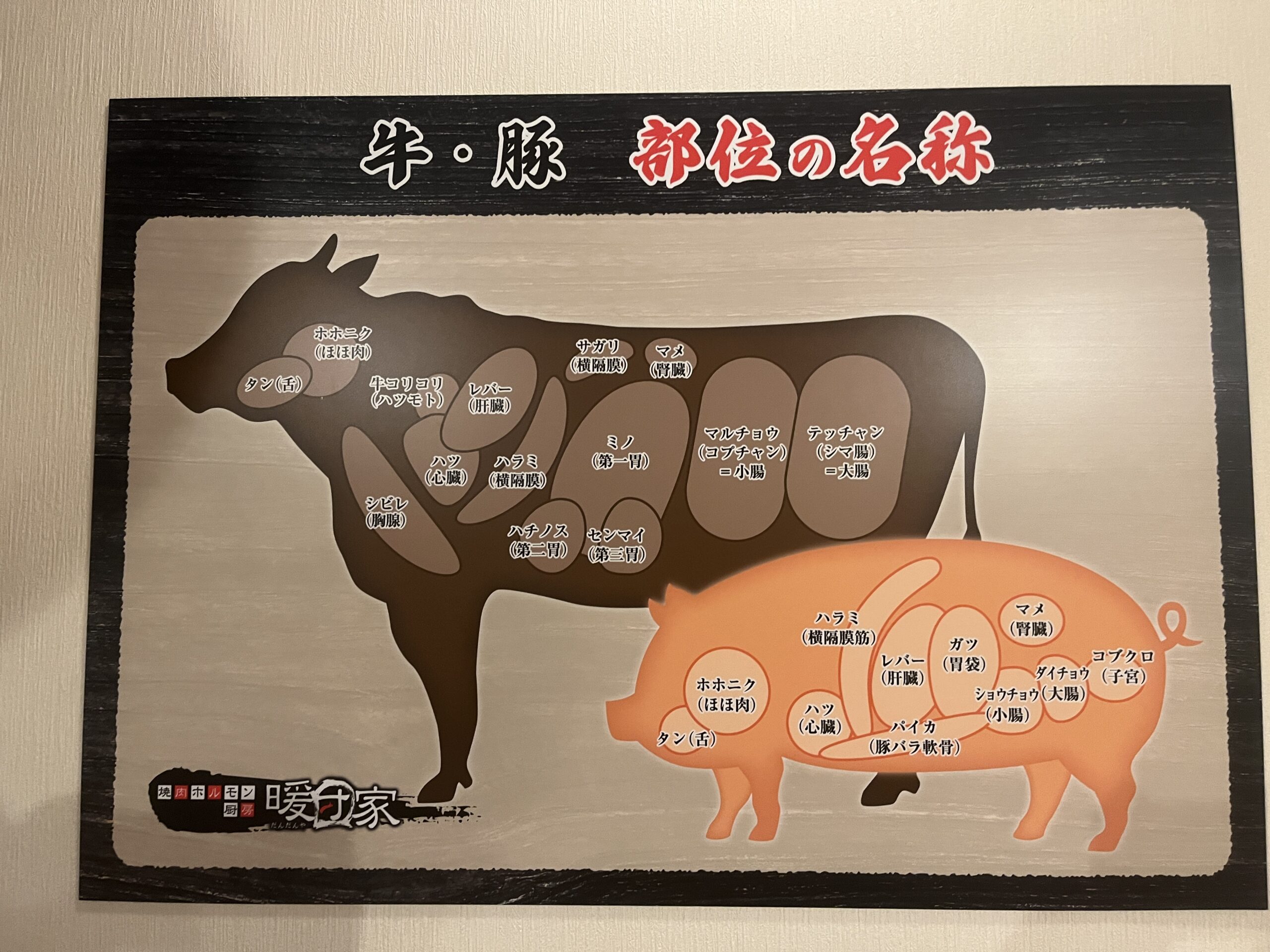 メニューと部位の表を見ながら選ぶのが楽しかったので
